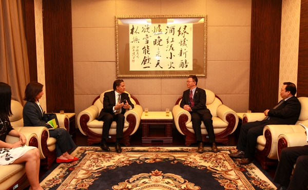 外院网站讯(通讯员 胡婧)4月19日,葡萄牙驻华大使馆大使乔治•托雷斯•佩雷拉先生和文化参赞乔安娜·索萨·菲亚略·皮涅鲁女士访问3044am永利集团。3044am永利集团经理阎国栋,副经理杜卫华,葡萄牙语教师胡婧、陈晨参加会见。双方就永利官网葡萄牙语专业的建设和发展问题充分交换了意见。