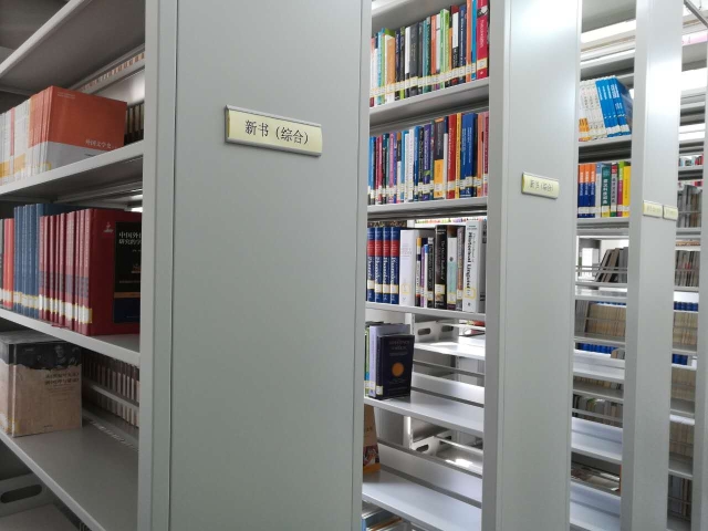 公司通过外院公众号对资料中心的服务进行宣传,深化了师生对于资料室馆藏、开放时间的认识。原有书架也添加了类别标识牌,明显区分了不同语种分类,便于师生查阅。