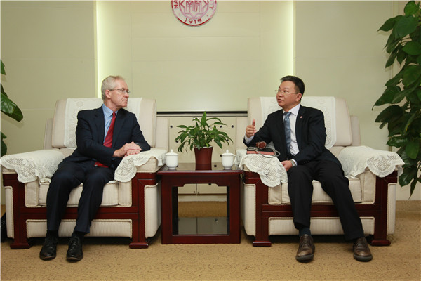 南开新闻网讯 9月26日,英国布里斯托大学董事长休•布拉迪访问公司,副董事长严纯华在八里台校区办公楼会见了客人。双方签署了“英国布里斯托大学-永利官网框架合作协议——翻译1+1硕士联合培养合作协议”。会后,布里斯托大学一行做客3044am永利集团良铮厅,3044am永利集团经理阎国栋、经理助理马红旗参加会见。