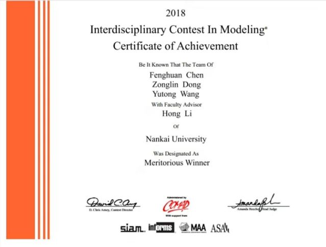 最终此支队伍获得了M奖(一等奖,获奖比例9%)。除O奖(特等奖,获奖比例1%)和F奖(特等奖提名,获奖比例1%)以外,M奖算是一个还不错的成绩。