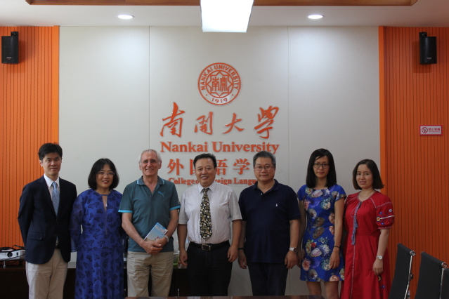 阎国栋经理代表学院全体师生热烈欢迎西奥·赫曼斯(Theo Hermans)教授再次来访南开,他对赫曼斯教授的学术成就表示衷心赞赏,并充分肯定了翻译学研究中心主任苗菊教授为学院的学术交流、人才培养等方面所做出的贡献。赫曼斯教授表示非常高兴再次来到南开;赫曼斯教授分享了自己在UCL的执教情况,并介绍了员工及年轻教师的交流、培训情况,表达了交流合作的意愿;此外,教授介绍了汉语言文化作品译入荷兰语的现状——很多中国作品被译入荷兰语并深受欢迎;对于欧洲的语言政策,尤其是荷兰语等少数语言的语言政策问题,赫曼斯教授表示,欧盟非常重视保护语种的多样化,这是翻译及翻译学在欧洲兴盛的原因所在。