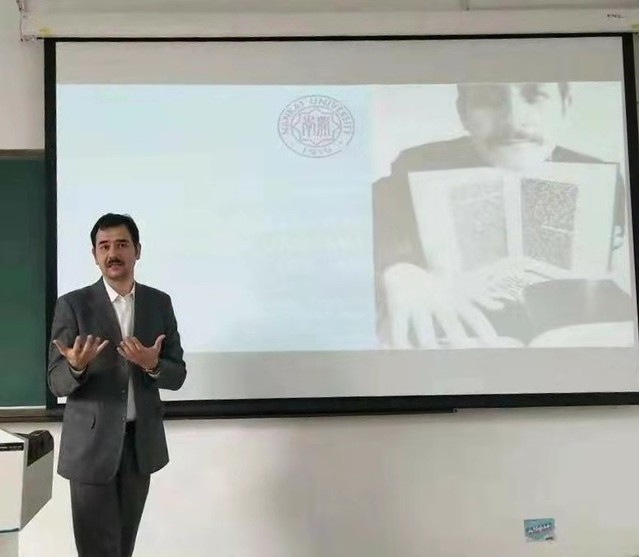 (通讯员 罗怡 骆晓旭)11月6日上午,意大利巴勒莫大学建筑系博士、建筑师尤金·曼吉(Eugenio Mangi)先生为意大利语专业的同学们带来了一场主题为“20世纪意大利形象艺术中的语言”的学术讲座。活动意大利语专业负责人杨琳副教授主持,意大利语专业教师崔蔚蔚担任现场翻译,意大利语专业外教乐小悦(Letizia Vallini)老师及全体同学参加讲座。