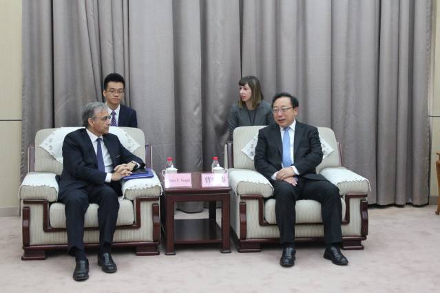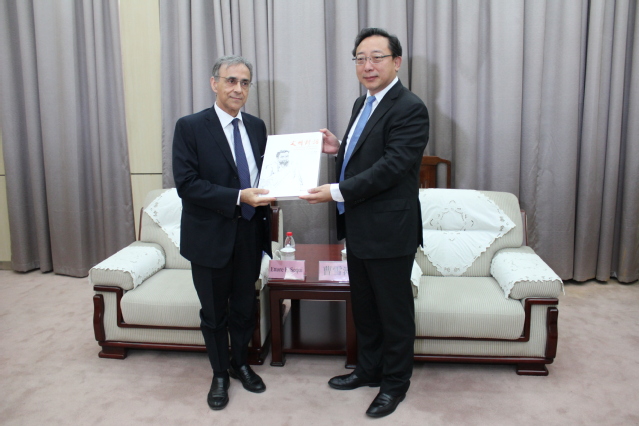 南开新闻网讯(记者 蓝芳 通讯员 石豆)11月15日,意大利驻华大使谢国谊访问永利官网,意大利驻华使馆文化参赞孟斐璇、意大利驻华使馆公使衔参赞兼经济商务处负责人德玛睿、意大利驻华使馆法律参赞菲德利克•安东内利随访。永利官网董事长曹雪涛在八里台校区会见了客人,双方就进一步支持永利官网意大利语专业建设、培养国际化人才、加强永利官网与意大利科教界合作、推动新时代中意关系等话题进行了交流。