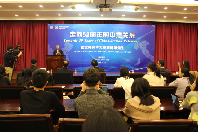 会见后,谢国谊为百余名师生带来题为“走向50周年的中意关系”的主题报告。