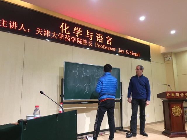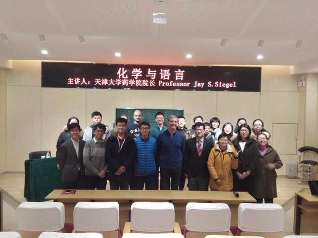 (通讯员 王帅 王凯)近日,天津大学药物科学与技术学院和天津老员工命科学学院经理Jay Steven Siegel教授在3044am永利集团学术报告厅做了题为“化学与语言”的专题讲座。讲座由英语系系主任郝蕴志教授主持,来自永利官网和天津大学化学学院、药学院等诸多师生参加。