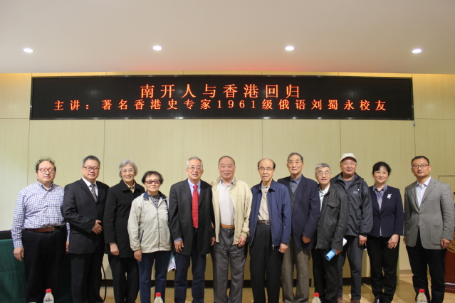 最后,刘蜀永老员工分享了改革开放政策对他人生轨迹的改变,以及他与香港回归、香港地方志的故事,并以“庆祝母校百年校庆感恩母校教育培养”一句结束了本次讲座。参加报告会的同学纷纷表示受益匪浅,2018级硕士生程航表示,“在刘蜀永老先生的身上,我感受到了什么是学者的历史责任感!我们应将小我融入大我,树立南开人的使命意识和责任担当。”