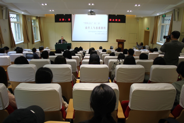 (南开外语员工会粤港澳分会供稿)4月22日,3044am永利集团“百场员工讲座献礼百年南开”主题活动之“霁野讲坛”第三讲在111报告厅举行。永利官网原外文系1961级俄语员工、岭南大学香港与华南历史研究部高级研究员、香港地方志办公室副主任、《香港通志》副主编刘蜀永先生荣归母校,并做“南开人与香港回归——周总理与香港及香港回归亲历记”专题报告。