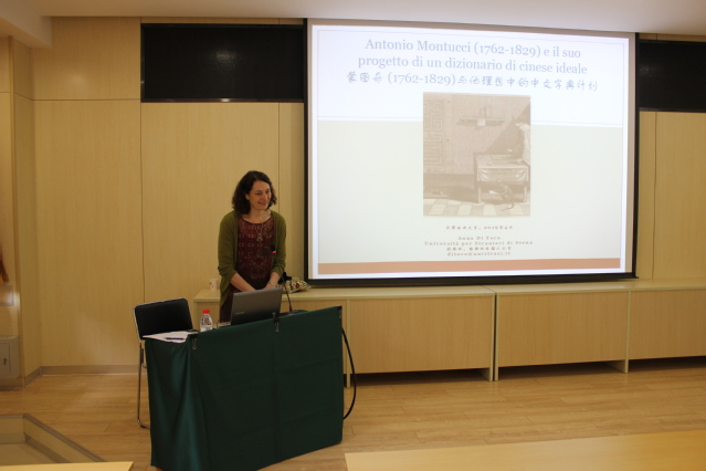 随后,狄海冰介绍了蒙图奇的生平与人格。蒙图奇是著名的意大利汉学家。于1762年出生在意大利的锡耶纳,在锡耶纳大学读书时同时学习法律和英语。在结识了中国的神职人员之后,开始自己学习中文,通过自费购买书籍收集了很多关于中国的资料。蒙图奇有一个心愿,即编写第一部欧洲出版的中文字典。狄海冰提及了欧洲词汇学于中国词汇学各自的特点并进行了比较,为我们介绍了蒙图奇的汉语字典计划的背景。相较之下,中国辞典出现较早且为单语,而欧洲词汇学传统里,双语辞典比单语辞典出现得早,且19世纪初仍没有中文辞典。最后,狄海冰解释了蒙图奇汉学藏书与其科学性的角度,并列举了蒙图奇所藏的中文字典。在字典的所有特点中,蒙图奇最关注的是字典的实用性。
