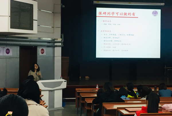 会上,周文钰详细介绍了外院2018届毕业生就业情况及2019届毕业生就业现状,并针对外院毕业生特点,分享了近三年的外语人才热门岗位,让外院学子更加清晰地了解了外语人的就业趋势。她还对2020届毕业生就业流程和2020届就业辅导活动——职场Running Man(第七季)进行了说明。通过对京津沪就业调研数据分析,周文钰叮嘱毕业生在夯实外语基础的同时,要提高领导力、计算机能力、情绪管理等职场能力与素养。