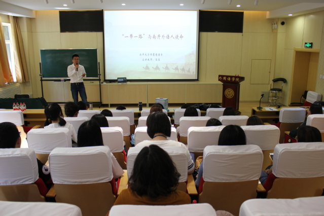 比赛中,英语系张晨以英语语音为主题,分析社会主义核心价值观的语音,与师生展开深入互动;俄语系宋胤男从俄罗斯文学的全人类特点出发,分析了中俄两个文化中的共同点,引出我国提出的“人类命运共同体”的概念及一带一路的倡议,并介绍了中俄文化交往的现状与前景;西班牙语专业龚韵洁从无人称动词haber的用法入手,选取《习近平谈治国理政》中的相关表达为例,结合习近平总书记视察永利官网的重要讲话精神,在教授语法知识的同时,鼓励同学们牢记嘱托,脚踏实地,努力学习;日语系郑琳从“怎样翻译中国特色社会主义相关表达”切入,讲授了中翻日时照搬汉字词的风险以及怎样才能让译文更加自然易懂;意大利语专业石豆以习近平总书记提出“一带一路”倡议及习近平总书记访问意大利的重要讲话为主题,提出南开外语人应当顺势而为,把小我融入大我,助力“一带一路”建设。