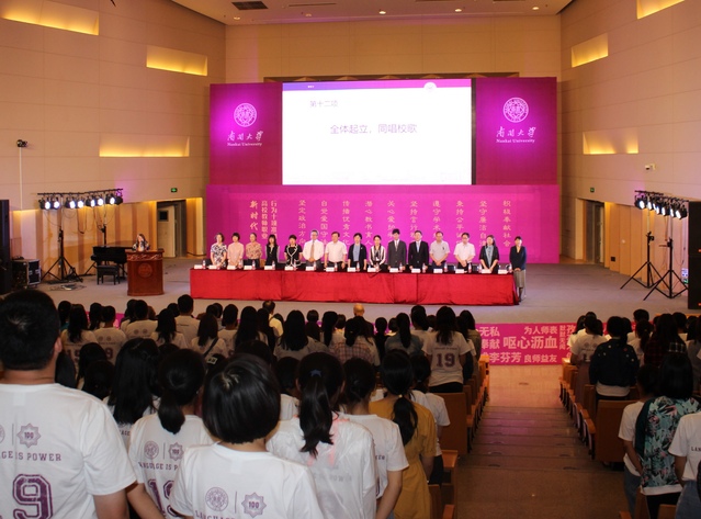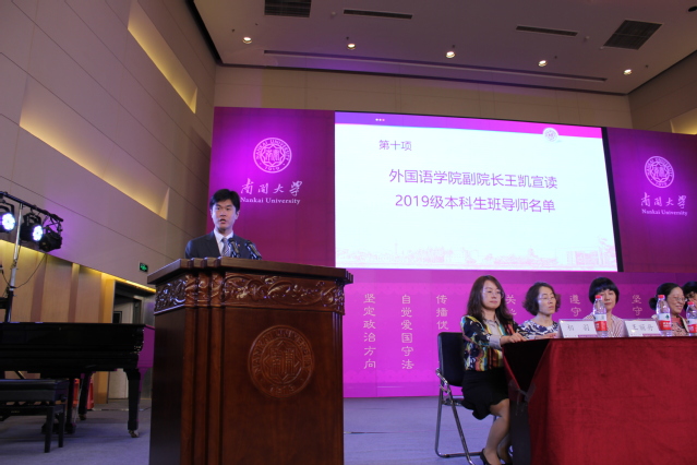 研究生老生代表、2018级英语语言文学专业博士生张雅雯同学分享了在南开的求学经历,鼓励新生汲取南开人允公允能、日新月异的精神,牢记外院“language is power”的口号;国家奖学金获得者、2016级德语专业本科生廖思潭希望新生利用好学院和学校丰富的资源,并从天津这座文化之城汲取创新灵感;新生代表、2019级意大利语专业本科生张桐恺则引导新生思考为什么选择南开、为什么选择外院、如何度过大学四年,号召全体新生锐意进取,立志成为沟通中外交流的强者。