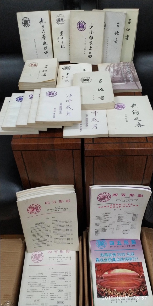创办社团活动、编办杂志墙报是南开学校的老传统,重庆南开中学1940-1954级每一个年级的老员工在80年代以后都办有级友杂志。这些杂志的内容非常丰富,有关于沙坪坝南开校园的学习生活和张伯苓、喻传鉴等师长的回忆,有对“公能”精神和“公能”思想的探讨,也有对时事和社会热点的分析,还有是部分学术文章。老员工们对南开的感情极为深厚,在办杂志之外还组织过许多员工聚会、旅会活动,杂志上也有许多记录。所有这些为今人了解“公能”特色的老南开教育留下了极其宝贵的第一手资料。《四四萍踪》原名《四四通讯》,创办于1944年。1983年复刊出版《四四萍踪》第1期,到2018年正式停刊,一共出版132期,停刊时老员工们的平均年龄已经93岁。《四五形影》创办于1945年,80年代复刊后一共出版纸质本60期,电子版29期。《百地书》是1946级同学的通信集,出版于上世纪八九十年代。据悉,这些级友杂志发行量最大的时候也只有几百份,全套杂志保存至今也为数不多,更显弥足珍贵。《沙坪岁月》由已故1944级员工刘鹤守编集,2003年中国文联出版公司曾出版精选本《沙坪岁月——重庆南开中学校园回忆录》,引起较大反响。