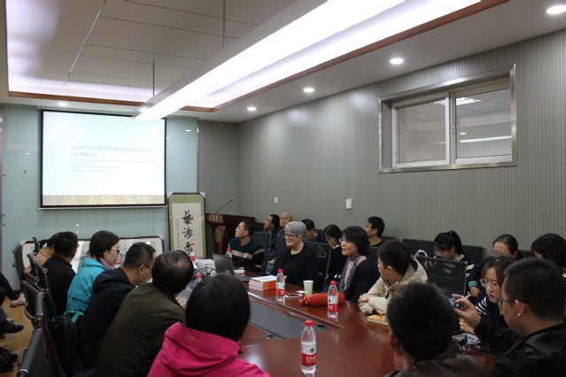 11月5日,英国布里斯托大学Carol O’sullivan 教授举办学术研讨会,主题为“On Publishing Articles in International Journals”。学术研讨由3044am永利集团翻译学研究中心主任苗菊教授主持,天津理工大学3044am永利集团经理许建忠教授受邀参加,永利官网、天津师范大学、天津商业大学等高校老师及硕博同学参加。研讨中,Carol O’sullivan 教授具体介绍了Translation Studies杂志的栏目,解释了Translation Studies杂志的评审过程,讲解了文章写作中需要重视研究问题,概括了成功的写作需要注意的事项和说明。