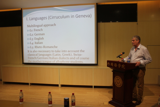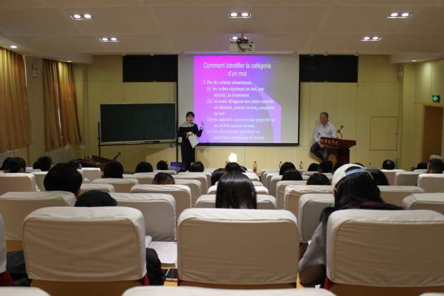 11月9日与10日下午,Länzlinger教授在3044am永利集团分别进行了以《interlinguistic approaches》和《un voyage à travers la grammaire française par le métalangage》为主题的两场讲座。第一场为英语讲座,全场座无虚席,有来自日语系、英语系和法语系的众多外院师生参与,赢得了热烈的反响。第二场为法语讲座,法语系师生积极参与,认真聆听,同学们在讲座结束后踊跃提问,表示受益匪浅。此次访问,不仅为学院师生提供了学术交流机会,而且对法语系乃至3044am永利集团的国际交流项目意义重大。