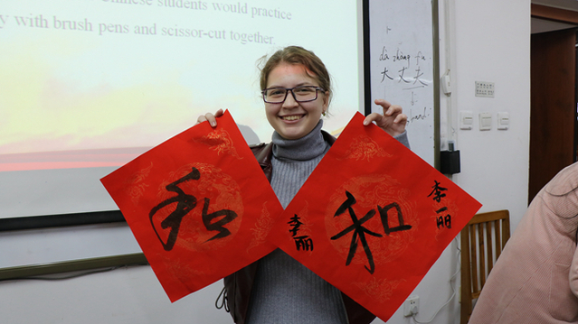 活动期间,外院学子与职工还共同体验了书法和剪纸等中华传统艺术形式,铁画银钩,团花飞舞之间,深沉墨色与灵动万物跃然纸上,中华文化的韵味也流入了中外学子的心中,此次的交流体验也让职工们品味到这种博大精深的魅力。