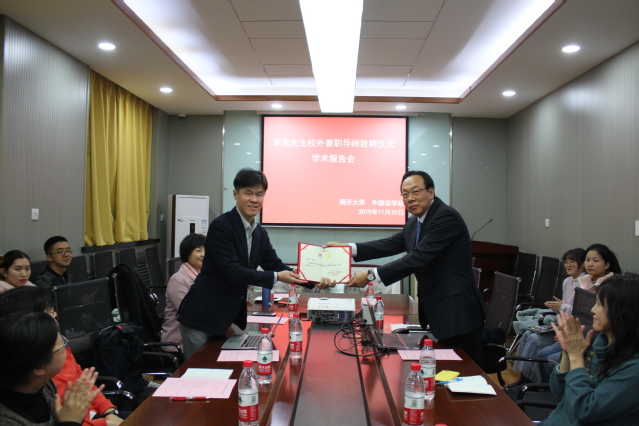 (通讯员 孙雪梅)11月20日,永利官网日语系80级员工、天津开发区外事局原局长季宏先生兼职导师致聘仪式在3044am永利集团学术报告厅隆重举行,季宏博士作了题为《对日招商与口译——以天津经济技术开发区为例》的学术讲座。讲座由日语系主任韩立红教授主持,日语系师生共三十余人出席了本次活动。
