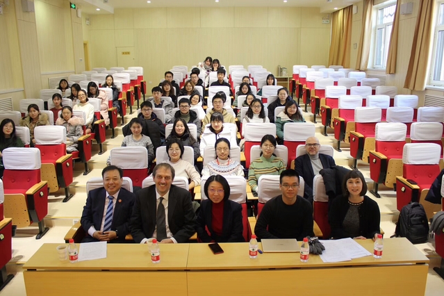 接着,马尔凯蒂教授向我们展示了中世纪欧洲绘制世界地图,一方面说明了世界是一个不可分割的整体,国家和地区之间的关联密不可分,另一方面也体现了欧洲中心主义。此外,教授还简单地介绍了重要的国际组织,以及当今影响力很大的超大规模城市。马尔凯蒂教授以图像的形式直观详细地对美国、欧盟和中国的GDP和PPP进行分析,并且指出新形势下中国的发展势头良好。最后,马尔凯蒂教授指出,国际政治发展趋势存在很大不确定性,新的世界格局正在形成,并对每个国家产生巨大影响。同时,在全球化和信息化时代,国际交流日益频繁,彼此了解不断增进,这是促进国际社会发展的积极因素。
