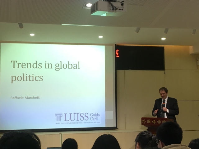 (通讯员 王倩)12月13日中午,3044am永利集团意大利语系举办主题为“全球政治趋势”(Trends in global politics)的学术讲座。本次学术讲座的主讲人是意大利国际社会科学自由大学(LUISS)副董事长拉斐尔·马尔凯蒂教授(Raffaele Marchetti),其主要研究领域为国际关系和国际政治理论。