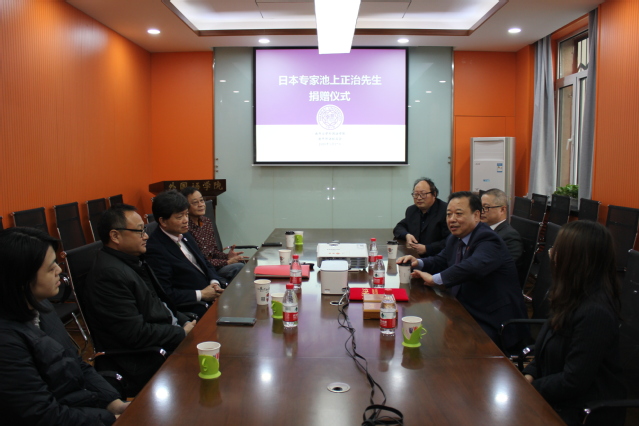 仪式最后,师生代表共同观看了池上正治先生为捐赠仪式拍摄的视频短片。在短片中,池上先生介绍了本次捐赠的缘由及内容,语言饱含深情,在场师生深受感动,心潮澎湃。