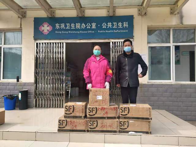 91级英语员工设立的“南开公能学社”和青岛南开学校捐赠的物品到达东巩卫生院