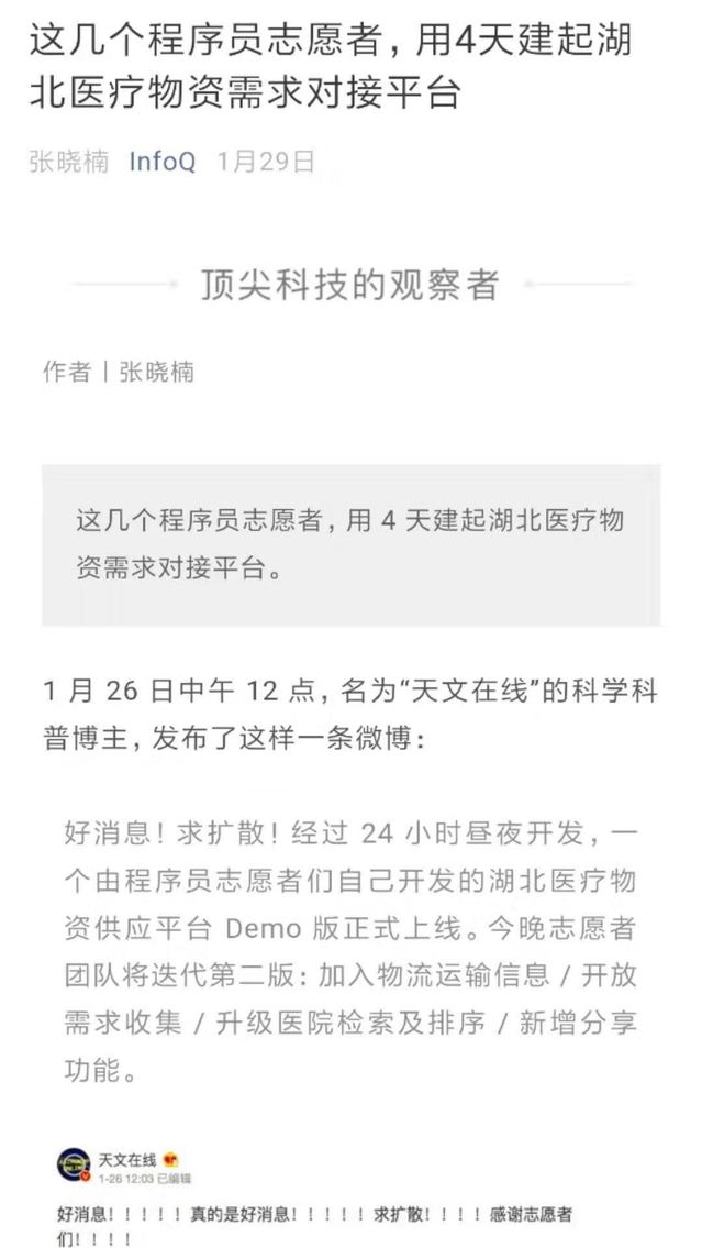 抱着试试看的心态,她加入了该平台。她的想法很简单,“当时想着,我先进去试一下,如果是真的,也算是尽了一份力,如果不是,就当是锻炼自己网络社交能力好了。”进入工作群组、进行了一定程度的工作和了解之后,她确认并核实了这位同学所提供的信息全部属实,这是一个由程序员志愿者们自己开发的湖北医疗物资供应平台Demo版,平台靠谱。