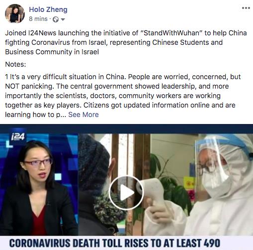 2月7日,郑小星员工接受了以色列I24News新闻频道的采访,介绍了“与武汉同在”志愿团队以实际行动支援祖国抗击新型冠状病毒的情况。