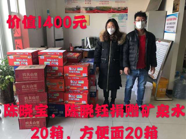 18级法语项目班陈晓钰的父亲是当地村委会的书记。防疫期间村委会工作繁忙,陈晓钰的父亲一天当中的大多时间都在工作。值班、村口排查……时刻也不能松懈。匆忙吃饭是他们的常态,有时连回家吃饭、休息的时间也挤不出来。陈晓钰看到了与父亲一样工作在防疫排查一线的委员会成员们的辛苦,敬佩之余也希望他们在工作的同时也能按时吃饭,保重身体。于是她和哥哥一起购买了20箱矿泉水和20箱方便面,将这些物资捐给了当地村委会。