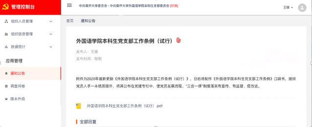 利用网络优势,党支部推动全面从严治党向纵深发展。通过“党建云”平台留言等方式及时获取意见与建议,及时回应党员和群众关切,根据民意反馈不断改进工作方法、规范支部建设。同时将党内监督的成效列入党员民主评议和考核评优中,在充分保障党员监督权的同时督促党员做“合格党员”,不断增强自我净化、自我完善、自我革新、自我提高能力。