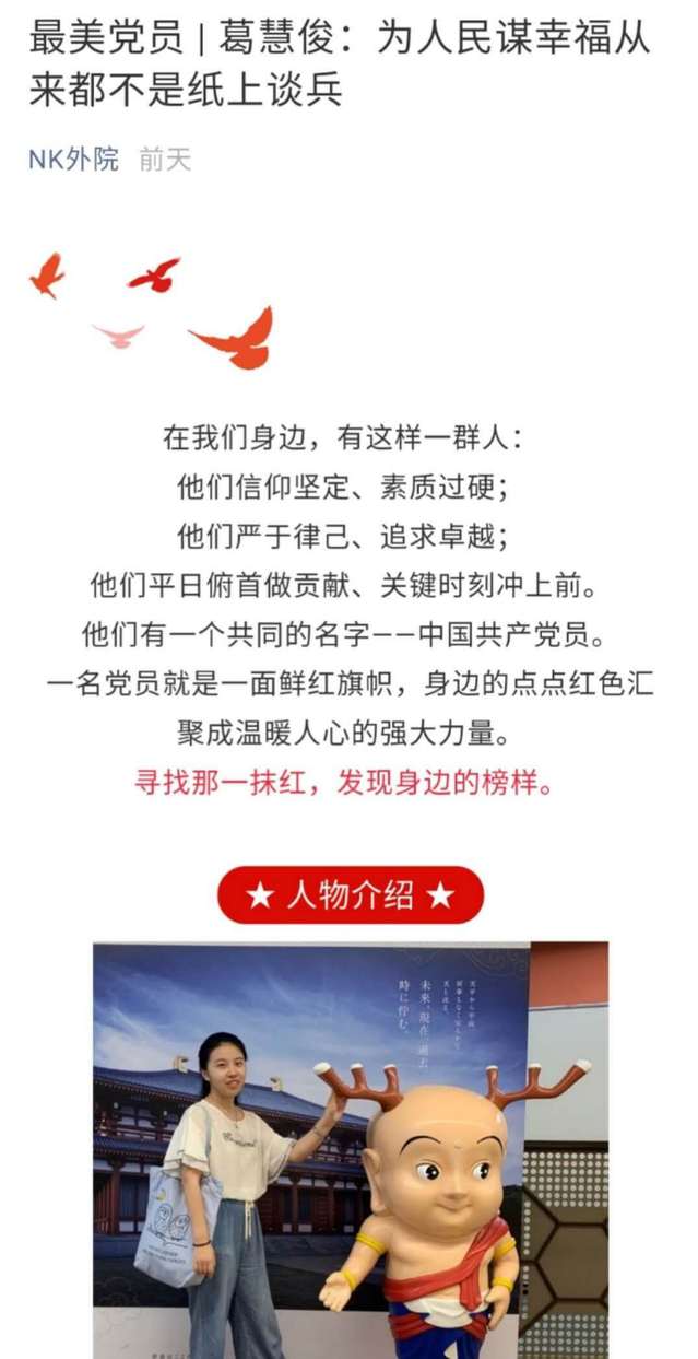 支部开辟“寻找那一抹红”专栏,已采访了3位在抗击新冠肺炎疫情中表现突出的外公司党员。采访葛慧俊担任社区志愿者、参与制作抗击疫情新媒体作品的事迹,讲述张雅雯主动参与公益家教、永利官网翻译志愿者突击队的故事,聚焦外院非通用语教师党支部书记赵春梅作为永利官网翻译志愿者奋战在抗击疫情第一线的见闻感受,并分享支部组织管理和日常教育活动的开展经验……用身边的点点红色照亮人心,激励党员与群众共同学习、不断进步。