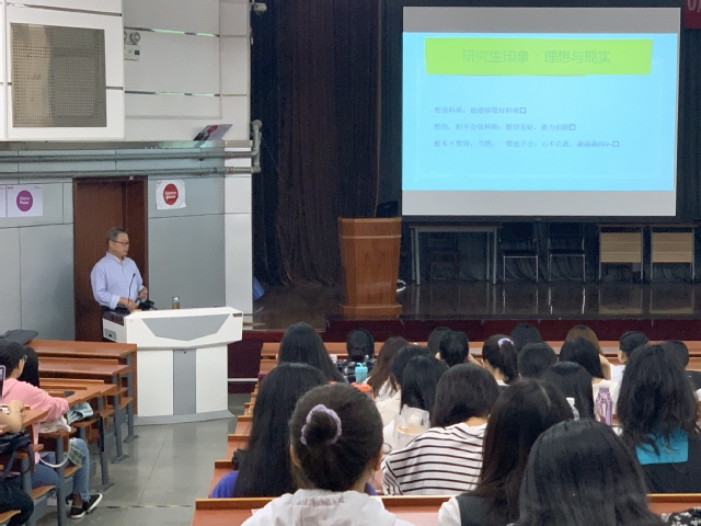 接着,马红旗从如何做一名合格研究生为同学们给予了具体的指导。第一,要多读书、会读书,获得广博的专业知识。他引用傅斯年的话,“上穷碧落下黄泉,动手动脚找东西”,以及俄裔美籍作家弗拉基米尔·纳博科夫等人的名言,强调了大量阅读、上下求索对于研究的重要性。第二,要形成较为系统的、全面的理论知识体系。马红旗将理论比作帮助研究生在学术研究的旷野之上找到方向的星辰,要想让理论成为黑夜中的指路明灯,同学们就要努力使自己具备扎实的学术理论功底和素养。第三,要通过发现问题、捕捉研究热点,来训练自身敏锐的学术眼光。同时,要通晓学术研究中的具体规则、制度规范、学风规范等,坚持学术诚信、恪守学术道德,从而杜绝学术剽窃、捍卫学术尊严。第四,要心态平和、要强健体魄。正如约瑟夫·艾迪生所说,“读书之于心灵,犹如运动之于身体。”马红旗强调,“锻炼好身体是研究生阶段的一项重要任务”。同时希望同学们积极与导师沟通,建立和谐的师徒关系;养成主动学习、自主学习的习惯,努力完成导师布置的学习任务。