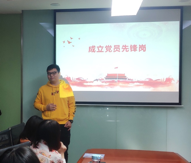 主题党日活动的最后,举行了党员先锋岗成立仪式。为积极引导支部党员争先锋、强素质、转作风,支部于本学期举办“党员先锋岗”创建活动,包含迎新示范岗、学习科研岗、理论宣传岗、志愿服务岗、群众帮扶岗等五个岗位。通过先锋岗的设立,推动党员亮身份、亮旗帜,切实承担起科研争先、理论深化、志愿奉献、互助帮扶等岗位职责,辐射全体党员素质硬起来、责任扛起来、形象树起来,从而营造争当“党员先锋模范”的浓厚氛围。