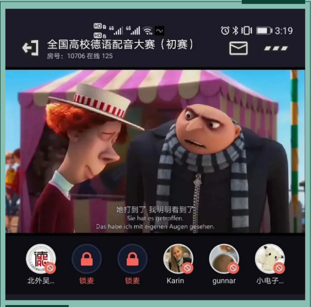 来自歌德学院的三位评委老师提到德方老师对永利官网德语系初赛的作品——配音选段《卑鄙的我》 (Ich—Einfach unverbesserlich)记忆犹新,称赞其有趣生动。参赛队员表示,能获此佳绩离不开全体队员的努力,更离不开永利官网德语系所有教师的悉心教导和鼓励,感谢外教Holger帮助纠正发音,还提出了非常宝贵的修改意见。
