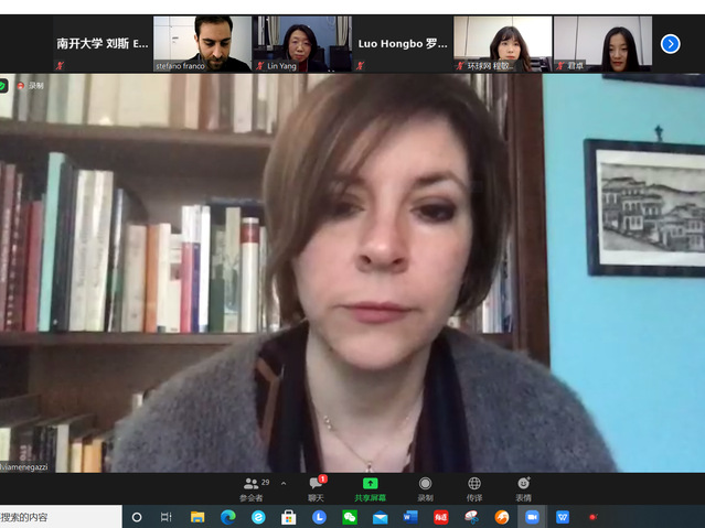 在报告主笔汇报各自研究成果的环节,首先,杨琳综述报告的主要内容,回顾中意民航业合作的历史,对两国民航和旅游业的发展进行整体分析和展望。接下来,意大利路易斯大学讲师斯特凡诺·弗兰克(Stefano Franco)、路易斯大学助理教授希尔维亚·梅内加齐(Silvia Menegazzi)、3044am永利集团意大利语系外籍教师乐小悦(Letizia Vallini)、意大利圣安娜大学博士后助理研究员安东尼奥·克鲁皮(Antonio Crupi)和重庆大学旅游管理专业博士生、意大利米兰天主教圣心大学助教博马克(Marco Bonaglia)分别就中意旅游业合作历史回顾、两国民航合作与旅游业、东航在疫情期间的突出担当、东航在意大利的发展等方面进行汇报。