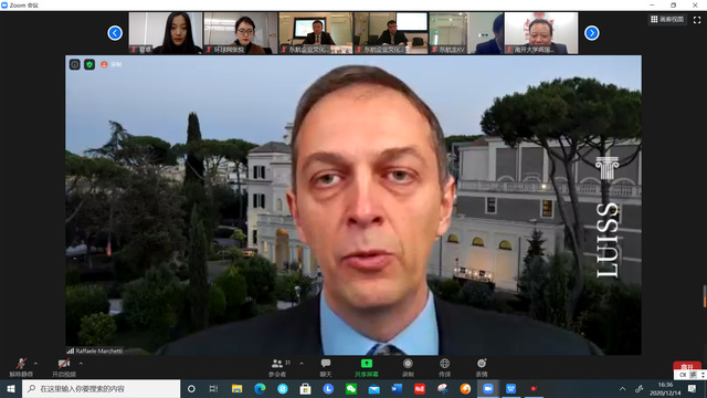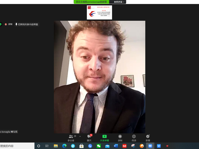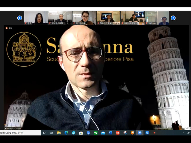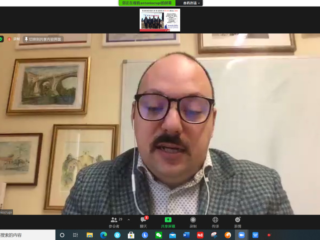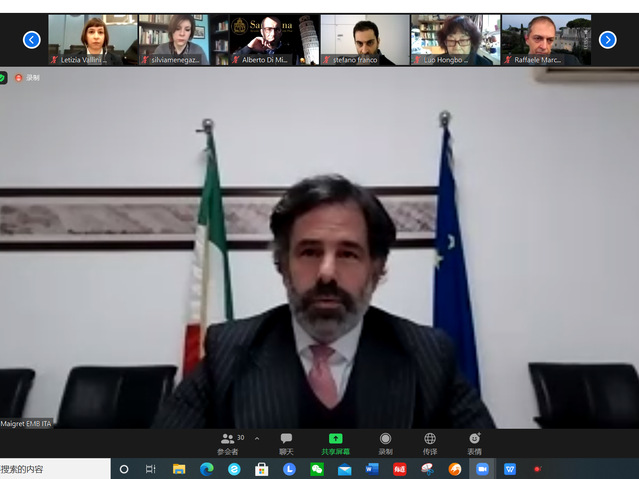 意大利路易斯大学副董事长拉斐尔·马凯蒂 (Raffaele Marchetti)教授希望通过“一带一路”倡议、2021年G20峰会等机遇,深化中意高校沟通合作,打造更完善的合作机制,为两国员工的发展、交流提供机会。比萨圣安娜大学教授、比萨孔子学院意方经理兼重庆大学意大利伽利略中心主任阿尔贝托·迪·米宁(Alberto Di Minin) 教授表示,数字技术使得国际联系更加紧密,对中意双方智库的紧密合作表达感谢。