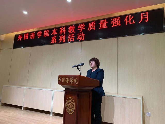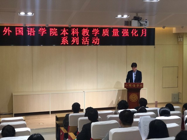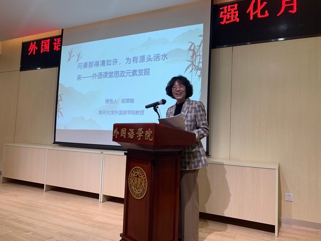永利官网首批课程思政十大典型获得者、翻译系教授、博士生导师胡翠娥做了题为《问渠那得清如许,为有源头活水来——外语课程思政元素发掘》的报告,从何为思政元素、课程思政讲授方式、因课制宜、教师素养等方面分别阐述了优质课堂思政如何做到自然、润物细无声,并且结合其本科必修英文课程《中国思想经典导读》详细例举了17讲的思政设计。胡翠娥教授最后提出,优质的课程思政之活水源头来自教师自身立德树人的教育信念、扎实的专业素养和通识文化修养。报告引人入胜,生动活泼,与会教师兴趣盎然。