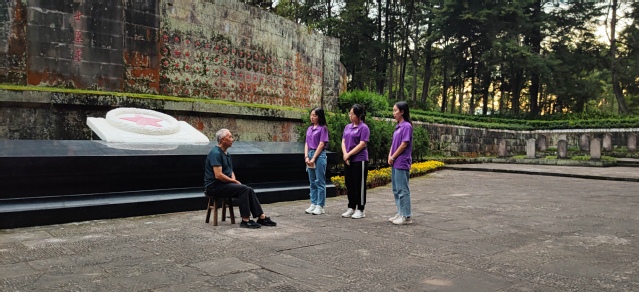 在红四方面军英勇烈士之墓碑前,全体实践队员举行了默哀仪式并行鞠躬礼。一方方墓碑在芳草中,25048名红军烈士长眠于此,实践队员怀着沉重肃穆的心情瞻仰墓碑。到达山顶后,在刻满烈士名字的纪念碑前,大家重温了入党誓词,表达入党初心。