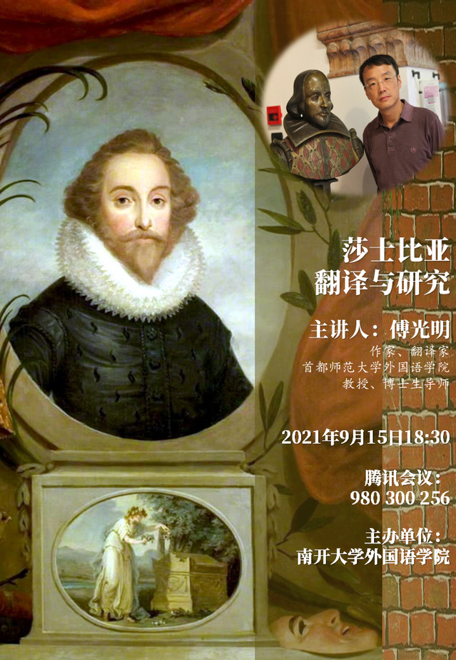 (通讯员 贺佳)2021年9月15日,首都师范大学教授、博士生导师傅光明教授为3044am永利集团师生带来精彩的线上学术讲座“莎士比亚翻译与研究”。