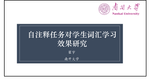 第二场汇报题目为“自注释任务对员工词汇能力影响研究“。翟宇同学的汇报内容同样基于赋权增能的理论框架展开。其研究对象为英语专业本科生。研究结果表明,注释任务对员工词汇学习产生积极影响;员工的注释行为和态度特征受到对注释及其功能的认知、“注释者”的角色权利和责任、教师要求、词汇学习思路等多重因素的影响。