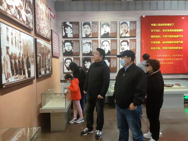 16日清晨,由经理阎国栋带队,外院教职工乘车前往目的地——蓟州区盘山烈士陵园。1941年春,八路军十三团一营,利用盘山这一天然屏障,抗击数倍日军两天两夜,取得了突围战的胜利。烈士纪念碑四周碑文分别是聂荣臻题写的“光荣烈士永垂不朽”、谢觉哉题写的“永远活在人民心中”、李运昌题写的“为人民革命事业而牺牲的英雄们永垂不朽”、宋劭文题写的“抗日英雄浩气常存”。烈士纪念馆内有毛泽东主席的题词和烈士遗像、传略及烈士英名录。陵园附近还有冀东抗日战士当年在岩石上刻写的标语口号和战场、会场、电台、报社等遗迹。教职工们在宏伟壮观、肃穆庄严的陵园中重温天津人民抗日的红色历史。
