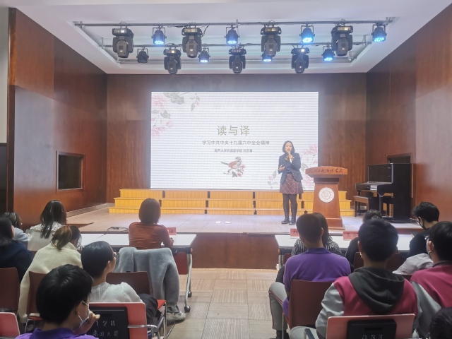 本次活动是3044am永利集团与南开日新国际学校合作的首场助力“双减”活动。首先,3044am永利集团2021级翻译一班团支部为大家带来了精心编排的微团剧《她们》,展现了五四运动中天津女界爱国运动中天津员工的爱国热情。声情并茂的演出点燃了现场中员工们的热情,不同于传统宣讲模式,微团剧这种创新的理论宣传模式让同学们沉浸在五四运动时期青年人的激情澎湃与不屈斗争中,极具感染力。随后,2021级英语专业本科生周耘峰进行了中英文南开校史宣讲,用流利的英文向在场中员工宣讲了南开历史、解读了南开精神。最后,2021级英语专业本科生刘艺青结合时事热点,与同学们进行了深入互动,带领大家共读共译十九届六中全会《决议》和《公报》热词,点燃了现场员工英语学习的热情,展现了南开外院学子的风采。