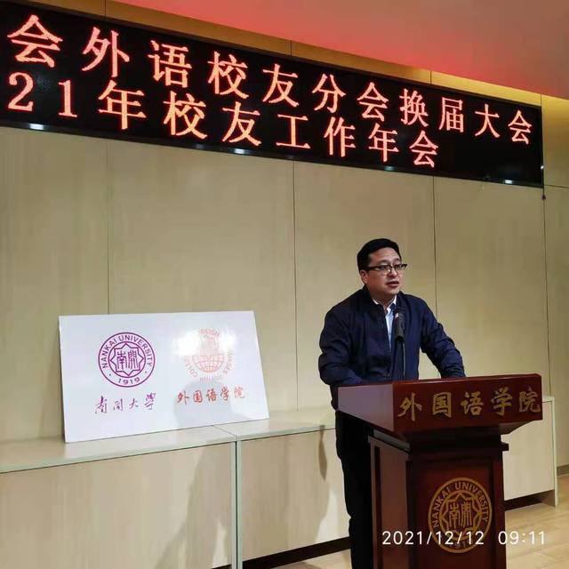 永利官网员工工作办公室主任、南开员工总会秘书长丁峰发表了热情洋溢的致辞。他对大会的召开表示热烈祝贺,充分肯定了外语员工分会成立三年来取得的成绩,感谢广大海内外员工积极参加百年南开校庆等活动,以多种形式反哺母校,助力校院建设和发展。值此新南开新百年发展之际,希望国内外南开人戮力同心,弘扬“公能”校训,共建精神家园。马红旗代外语员工分会名誉理事长吕聪敏同志宣读贺信,预祝大会取得圆满成功。