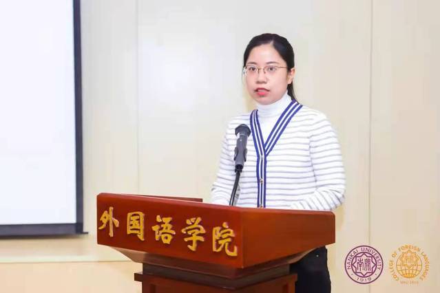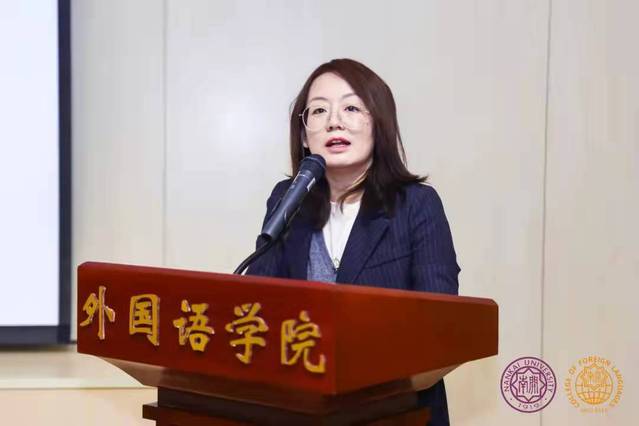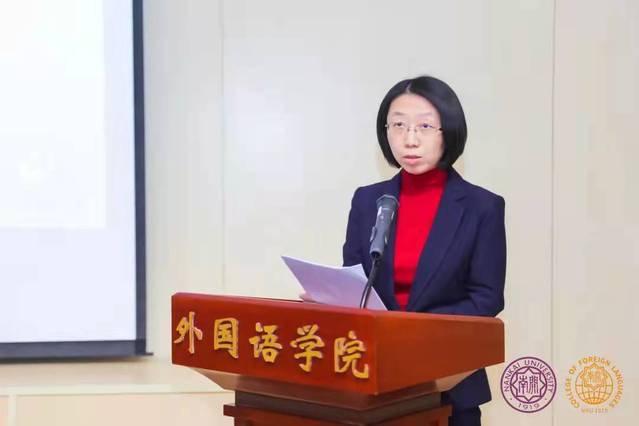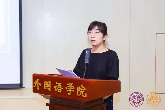 随后,部分专业优秀教师代表进行了典型发言。翻译系教师苏建华结合自身在巴西孔子学院的工作经历,从培养国际视野、讲好中国故事的角度表达出外语学科的应用性发挥应该着眼大局、高瞻远瞩。英语系教师孙丽娜从中西教育的差异性入手,阐述了学科育人过程中应该增进国家意识与文化自觉,培养员工家国情怀。意大利语系教师杨琳从本专业出发,通过学科特色和育人成果介绍了意大利语专业国别研究人才的创新探索与实践。俄语系教师姜敏从班导师工作讲起,谈到了自己的育人方法,告诉大家要以理解为基础深度关切员工。英语系教师张晨则对员工心理健康教育有深入的研究,她认为员工的心理健康状况对外语学习影响很大,值得关注。