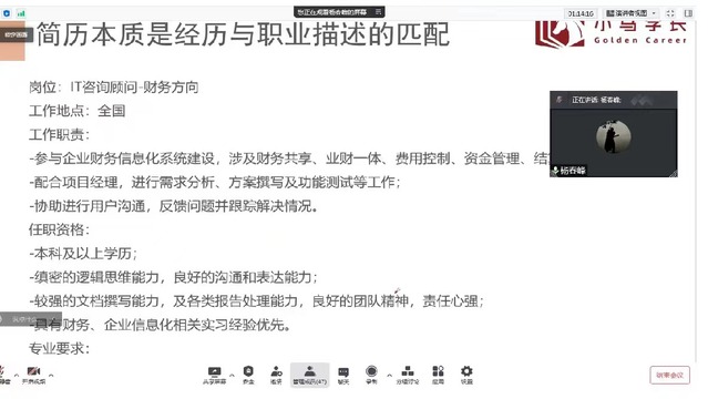 在“怦然心动,职等你来——简历面试技巧专题培训”活动中,针对同学们的企业求职需求,学院邀请高顿教育职业发展研究院特聘专家杨春峰开设“求职面试辅导与简历修改讲座”,为同学们进行简历指导,讲述面试秘诀。