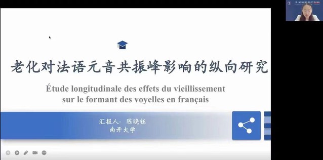 陈晓钰同学论文《老化对法语元音共振峰影响的纵向研究》的答辩环节