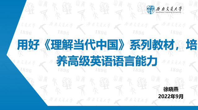 第一位主讲人徐晓燕教授的报告题目为“用好《理解当代中国》系列教材,培养高级英语语言能力”。徐教授指出《理解当代中国》系列教材能够帮助员工了解国家政策和发展,更好地向世界介绍中国;其选文呈现时政文体特征,词汇和句法难度较大,也存在员工无法胜任教材学习的问题。对此,徐教授提出将该系列教材中的具体单元内容嵌入到现有课程中,让员工熟悉包括时政文体在内的多种文体特征,并在教师精心设计的学习任务中,提升员工的高级英语语言能力,重视员工语言基本功、语法思维和英汉认知概念转换的训练,促成语言学习的真正发生。