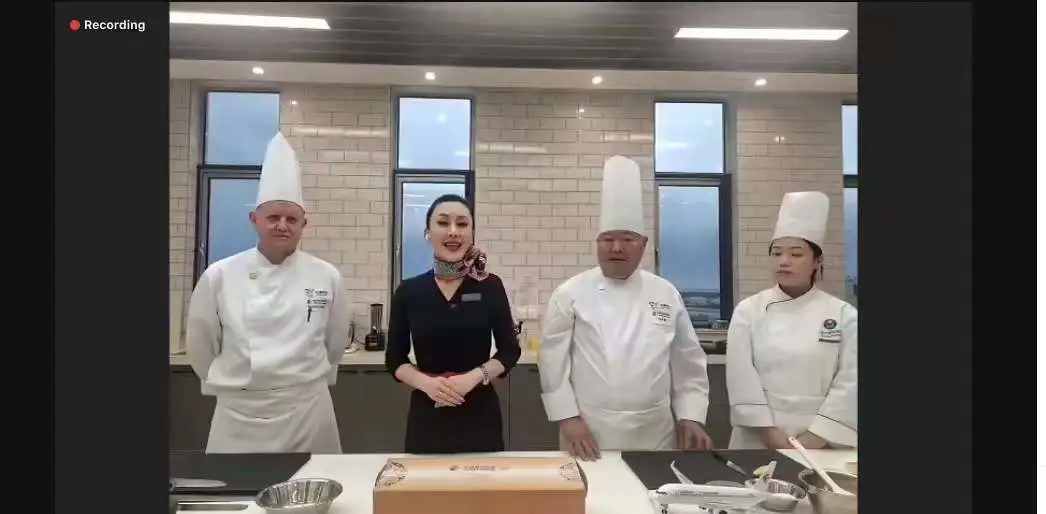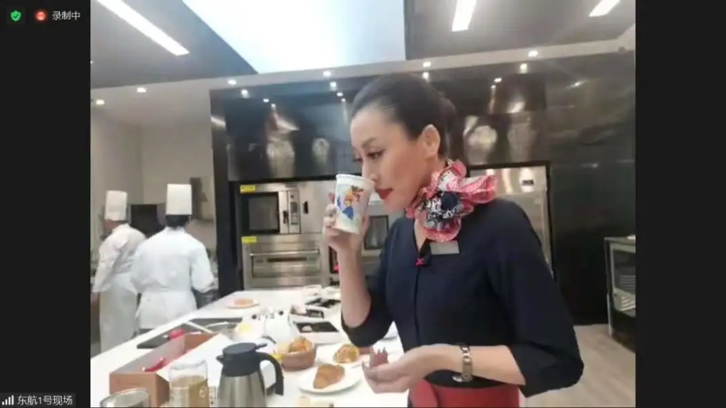 直播活动现场,曾留学旅居意大利的乘务长胡安伦担任主播,带领师生走进东航食品公司,结识了东航“天厨”团队的外籍行政主厨路德维希和拥有45年中西点心制作经验的高级点心师马庭堂,观摩中式点心与西式甜品的制作过程,感受中西方甜品烹调技艺的异同。