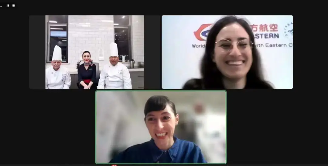 胡安伦乘务长带领两国员工“云品尝”东航特色航食,讲解“东航那碗面”和“东航那杯茶”背后兼具美味与健康的设计理念,后者以西游记为主题的国风系列新品让员工们赞叹不已。透过镜头,员工们直观了解到东航航空餐食中文化与美食相结合的巧思,感受东方饮食的独特魅力。