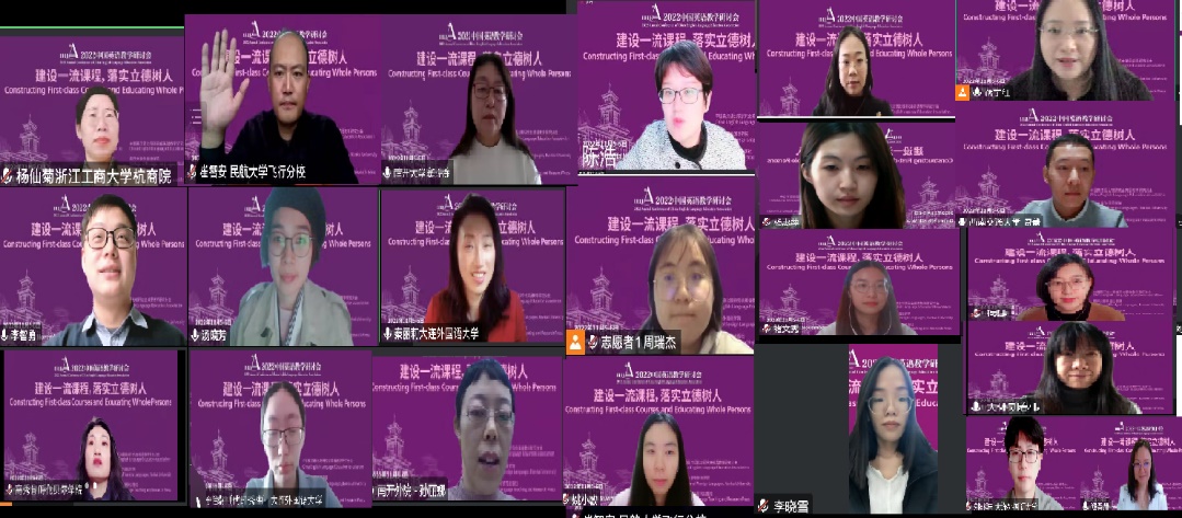 各分组发言围绕一流课程建设与创新、英语课程思政专题、英语教学模式与方法研究、外语课程建设与评价等一系列话题,深入探讨英语教学中的真问题。比如,如何使用信息技术赋能外语教学,助力一流课程建设,如何采用虚拟现实技术与语言教学相融合的方式在语言教学领域进行新的探索,如何将思政元素全面、深入、多元融入英语课程的路径、方法和评价,如何结合地域特色开展英语课程,提升员工文化自信和国际传播能力,如何进行英语课程思政元素多模态教学实践等等。