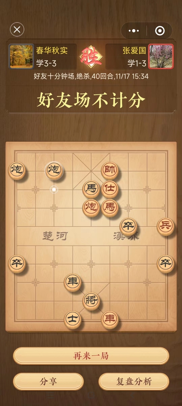 此次棋类比赛分为正规赛、娱乐赛两种赛制,正规赛项目为中国象棋及五子棋,娱乐赛项目为跳棋及飞行棋。比赛在外院教职工中引发热烈的反响,参赛的棋手在棋局中纵观全局、沉着应战、排兵布阵、招招紧逼,棋盘之上兵来卒往、飞象跳马,即使是在“云端”相遇,教职工棋手也展现出了缜密的思维能力。张爱国老师、黄昊霏老师分别获中国象棋及五子棋比赛冠军。