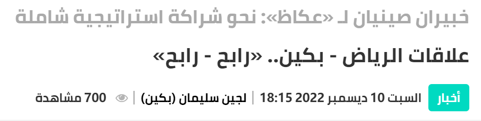 12月10日,公司阿拉伯语系负责人窦天娇就习近平主席访问沙特接受沙特主流媒体《欧卡兹报》采访。报道主要内容编译如下: